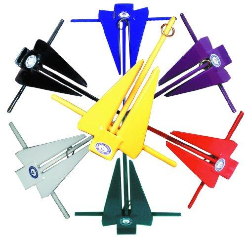 Solid steel construction. Self-releasing lightweight easy-to-store. Coated in no-mar resistant plastisol which protects boat finishes. Color: white.
