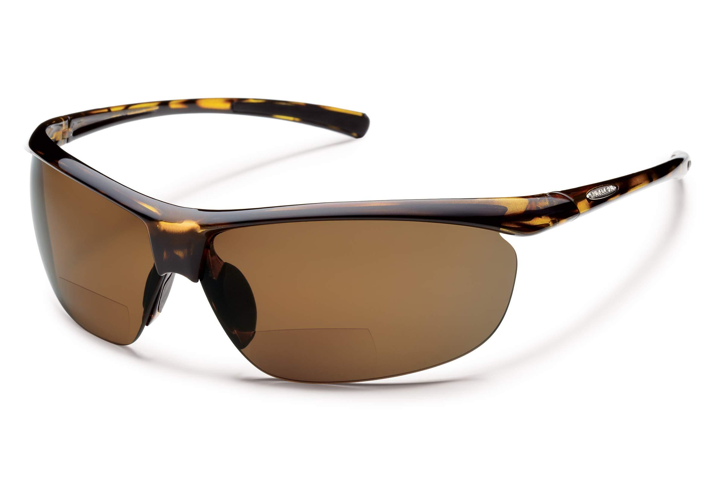 These reader sunglass shields are so lightweight you might forget they are on your face. The great coverage, super flexible fit and megol nose and temple pads control the forces of Mother Nature. Polarized lenses and TR90 frames go from boats to bikes with ease.